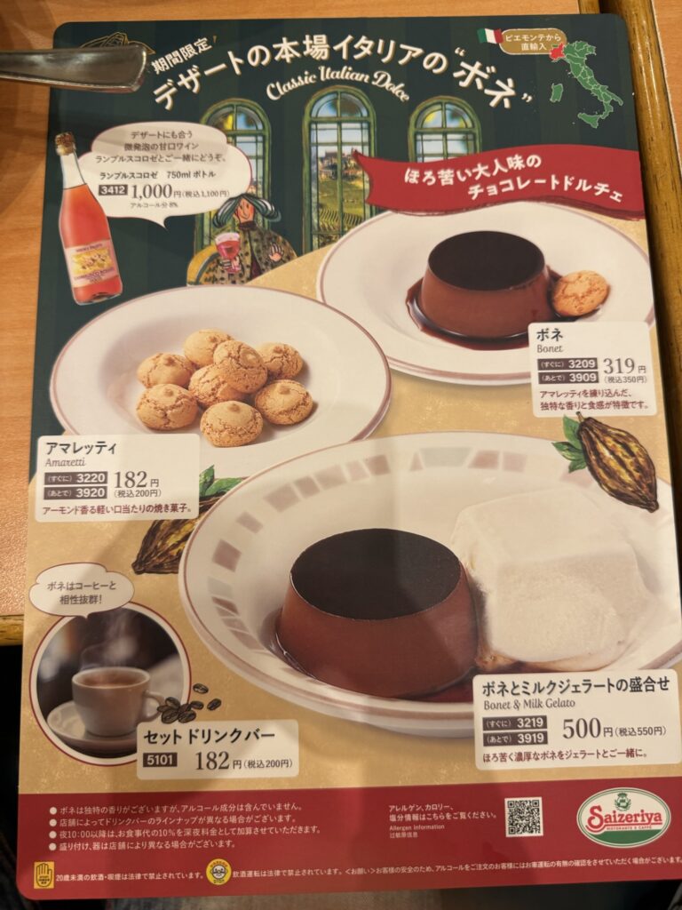 今回の「ボネ」に限らず、サイゼリヤのメニューをよく見ると、