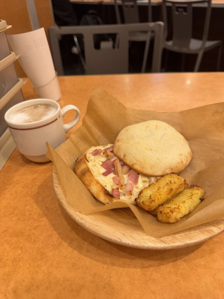 朝の時間帯にふわっと香るフォカッチオとホットコーヒーを味わえるのは特別な体験です。