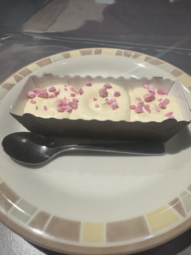 トッピングのピンク色が可愛らしく、甘酸っぱさが魅力です。